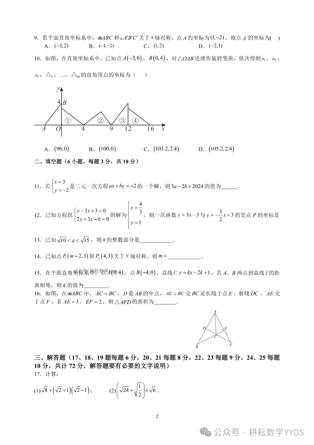 人教版25-26學年八年級上冊數學第三次月考沖刺卷