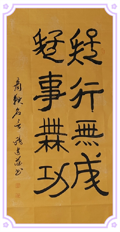 這些作品,首先體現(xiàn)在對經(jīng)典內(nèi)容的精心選擇與時代價值的深度挖掘上。戚建莊先生以深邃的文化眼光,從浩如煙海的中華典籍中精選出100余個富有代表性的古典成語詩詞。這些內(nèi)容,既有老子“上善若水”的處世智慧,孔子“己所不欲,勿施于人”的恕道箴言,也有墨子“兼相愛,交相利”的平等博愛,鬼谷子“捭闔縱橫”的謀略精髓;既有“天行健,君子以自強(qiáng)不息”的奮斗精神,也有“防微杜漸”“眾志成城”的實踐智慧;這些經(jīng)典名句,穿越千年時空,依然閃耀著真理的光芒,與我們當(dāng)代社會的價值追求、精神需求高度契合。