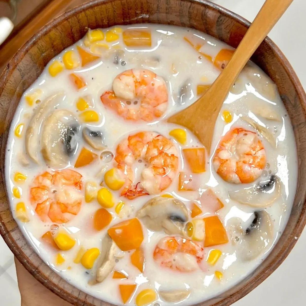 牛奶補充營養,蝦仁富含蛋白,玉米清甜爽口,三者煮成羹湯黏稠順滑、鮮香不膩,既能補充體力,又能助眠安神,睡前吃一碗無負擔。