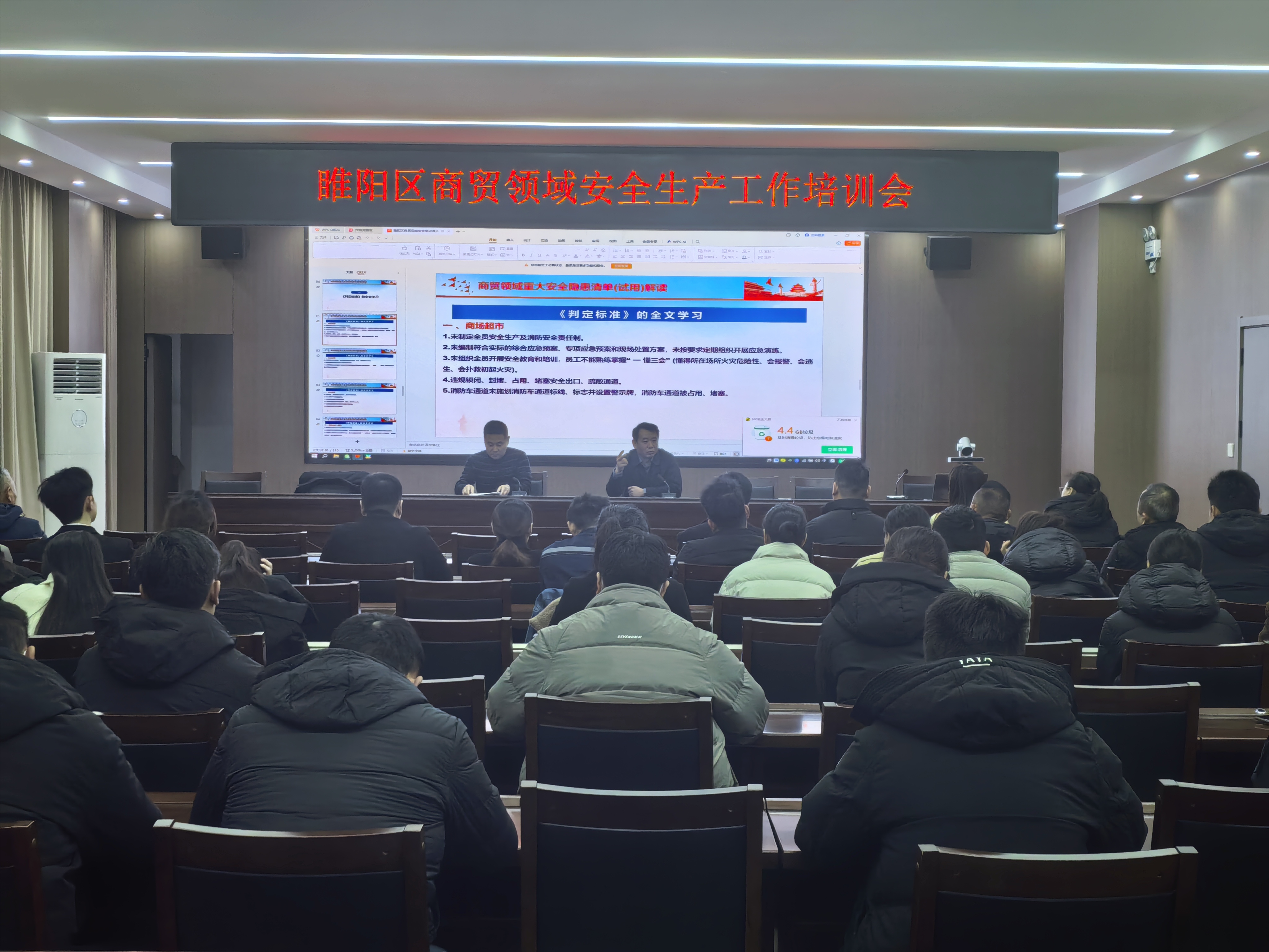 近日,針對年末歲尾各類安全風險疊加、商貿場所人員流動增大的特點,商丘市睢陽區應急管理局組織開展商貿領域安全生產專項培訓,旨在進一步強化人員密集場所安全管理,壓實企業主體責任,堅決防范事故發生。全區大型商超、酒店、賓館等重點企業負責人及安全管理人員共計60人參加培訓。