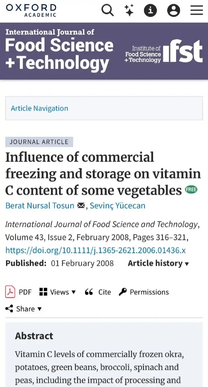 這當然不是冷凍產生了營養成分,而是一個關于“新鮮”的知識誤區——傳統觀念中,大家認為“新鮮蔬菜”最有營養,但蔬菜是一個有機生命體,采摘后其生命活動仍在繼續。市售的“新鮮”蔬菜,都需要長途運輸,在漫長的流通中,蔬菜會持續消耗自身營養物質,導致營養流失。