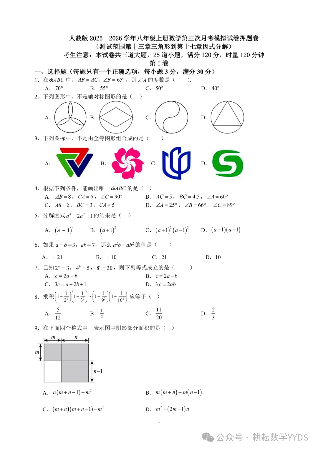 人教版25-26學年八年級上冊數學第三次月考模擬押題卷