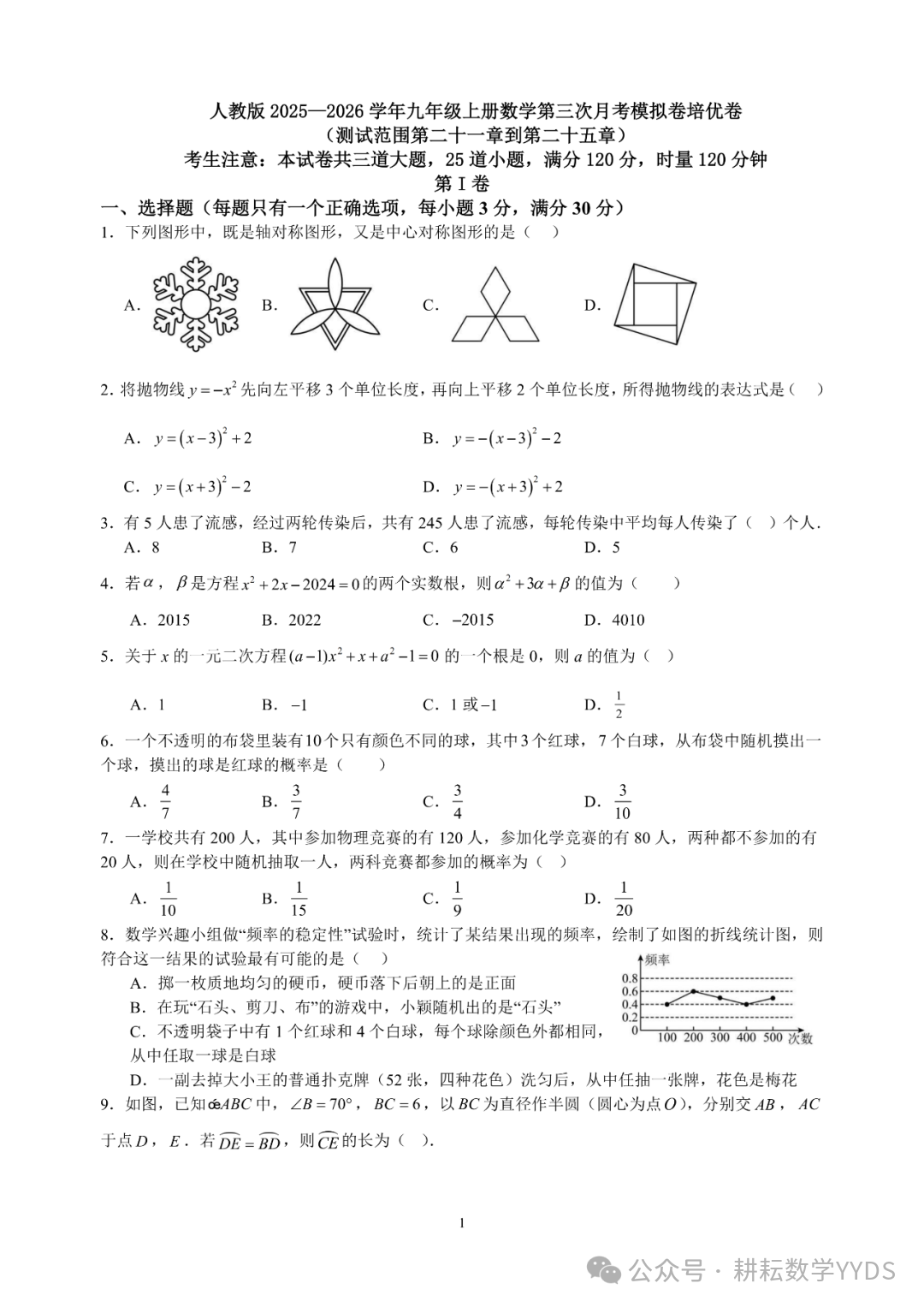人教版25-26學年九年級上冊數學第三次月考培優卷