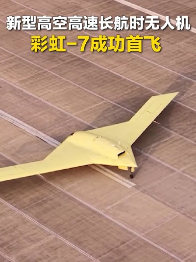 造型科幻,隱身利器!新型高空高速長航時無人機彩虹-7成功首飛 。@央視軍事