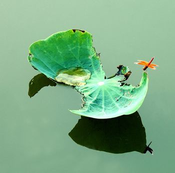 在我心中,這寂靜殘缺的敗葉荷梗,竟比六月天滿塘的亭亭玉立,紅紫粉白……更接近于生命的本相。