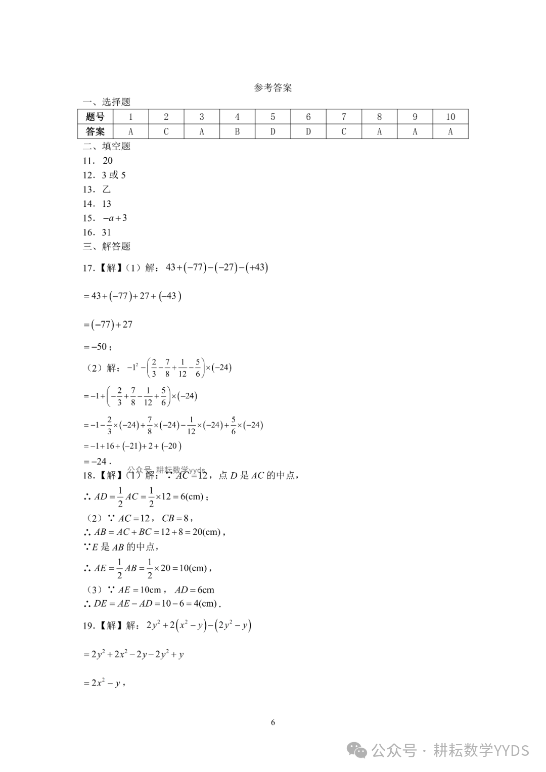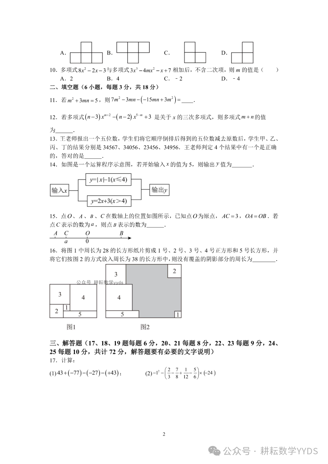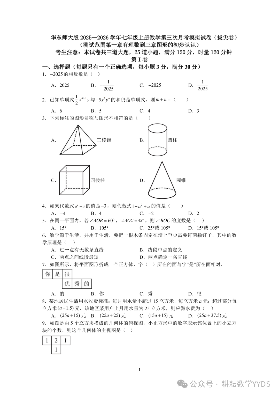 華東師大版25-26學年七年級上冊第三次月考拔尖卷