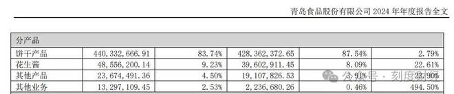 業(yè)務(wù)結(jié)構(gòu)高度依賴傳統(tǒng)爆款,2024年年報顯示,餅干產(chǎn)品貢獻營收4.40億元,占比高達83.74%,其中鈣奶餅干從上世紀60年代誕生至今,仍是無可替代的“壓艙石”。