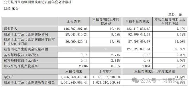 2025年第三季度實現(xiàn)營業(yè)收入1.47億元,同比增長10.41%,歸屬于上市公司股東的凈利潤為2804.35萬元,同比增長5.58%。