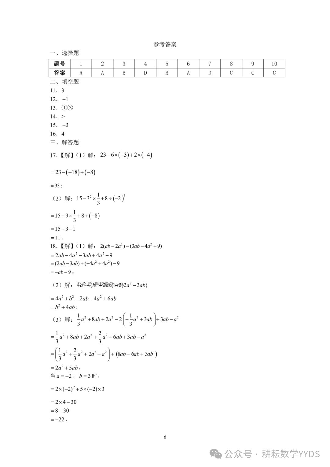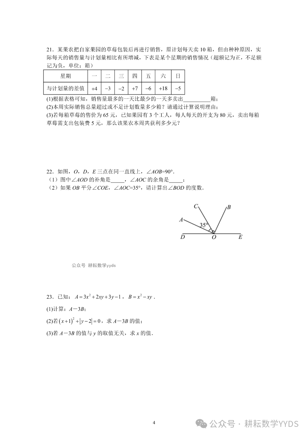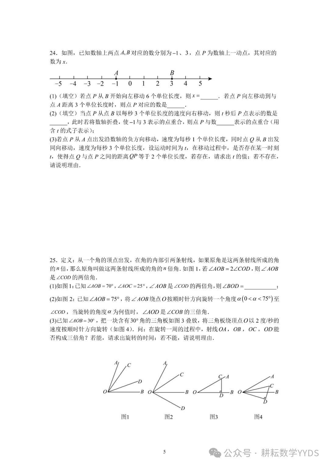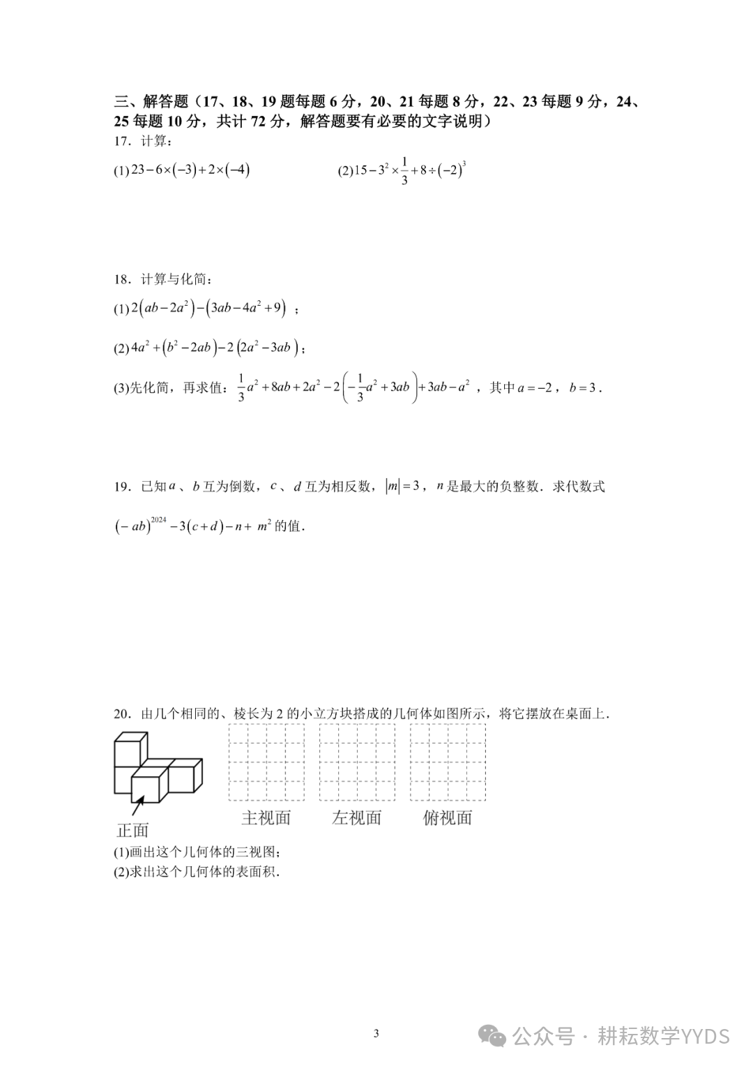 華東師大版25-26學年七年級上冊數學第三次月考培優卷