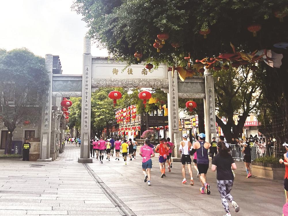 林養東參加全程馬拉松比賽,記錄下跑進南后街的瞬間