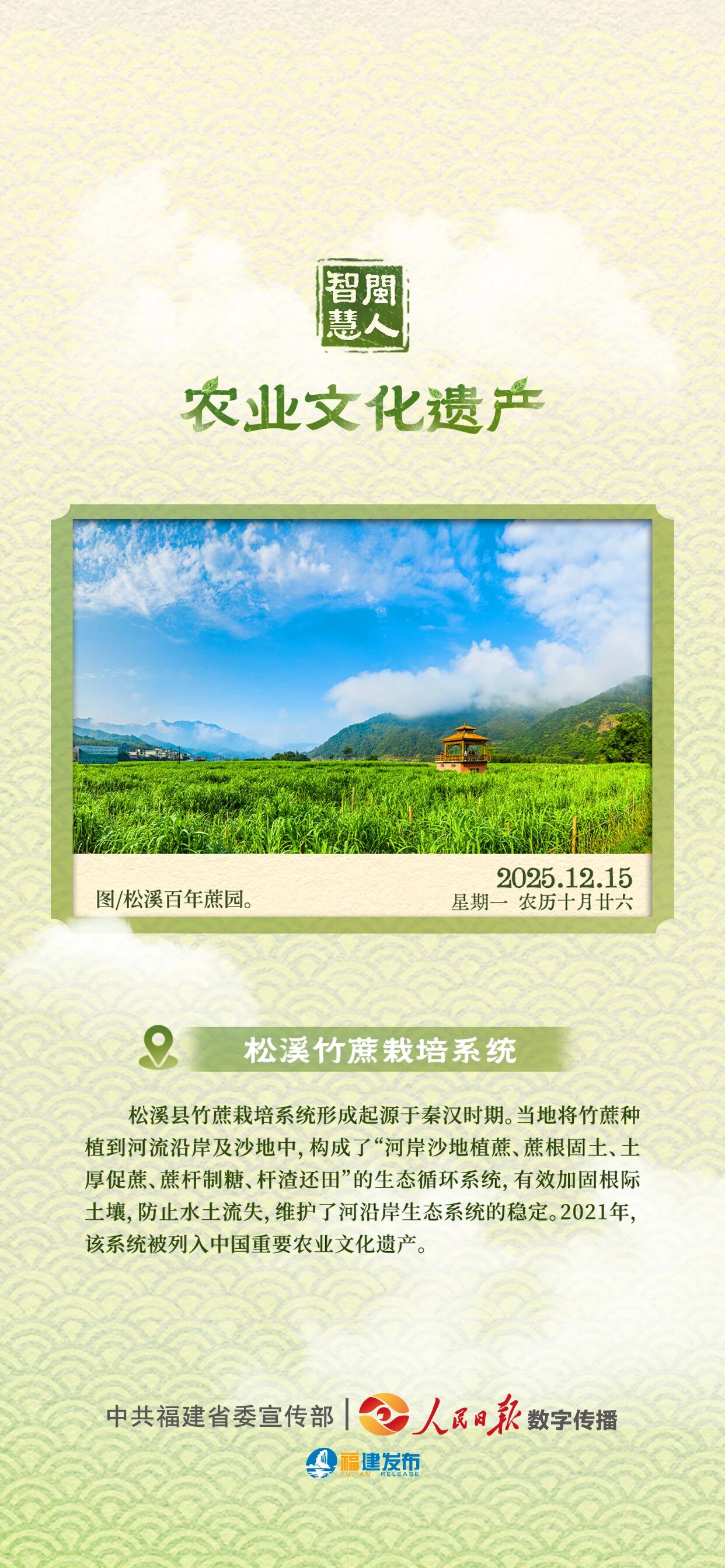 松溪縣竹蔗栽培系統形成起源于秦漢時期。當地將竹蔗種植到河流沿岸及沙地中,構成了“河岸沙地植蔗、蔗根固土、土厚促蔗、蔗桿制糖、桿渣還田”的生態循環系統,有效加固根際土壤,防止水土流失,維護了河沿岸生態系統的穩定。2021年,該系統被列入中國重要農業文化遺產。