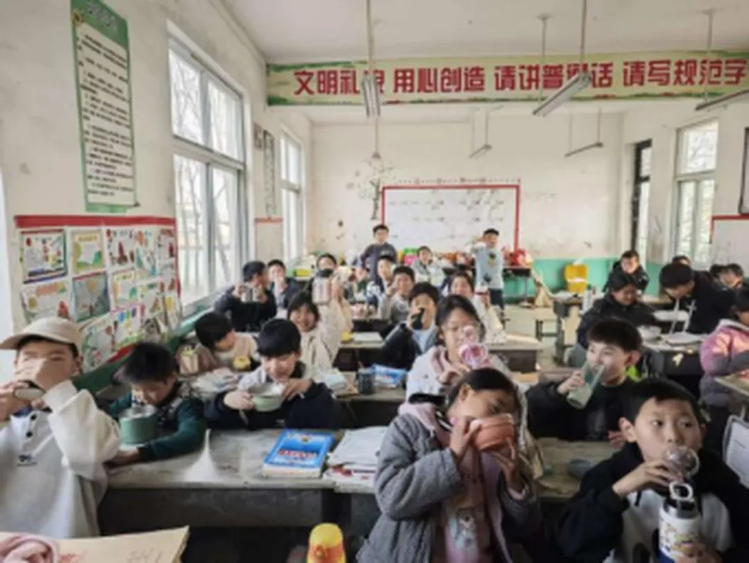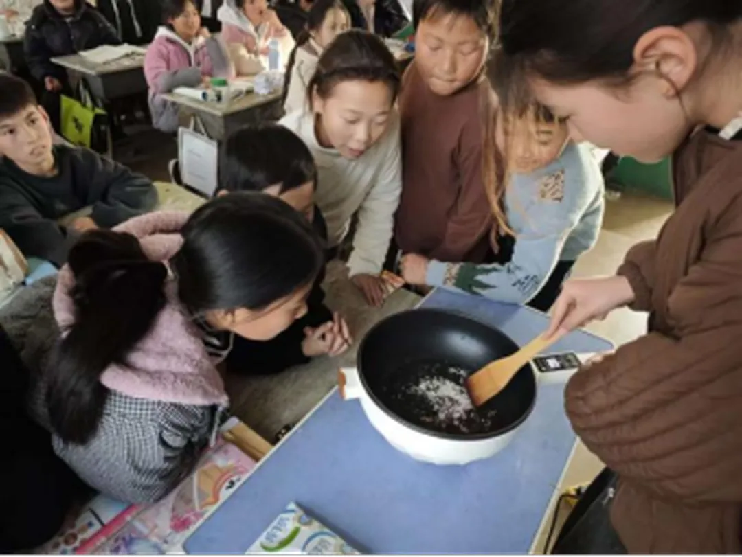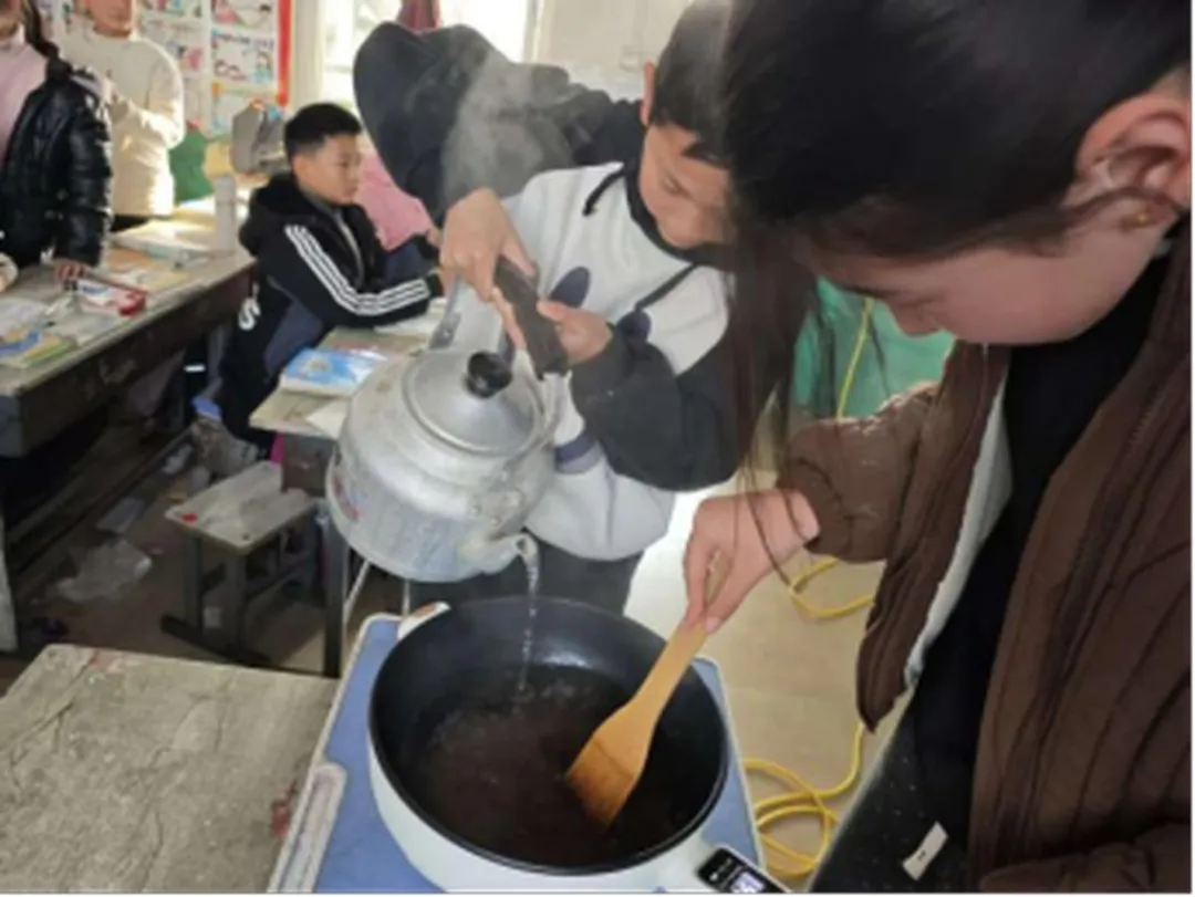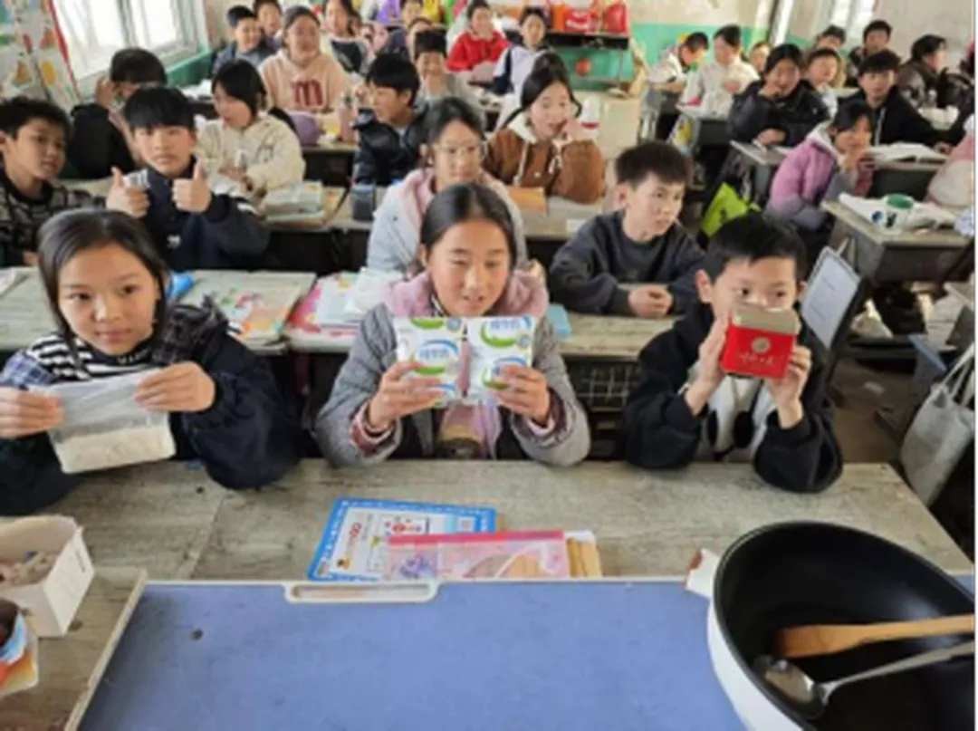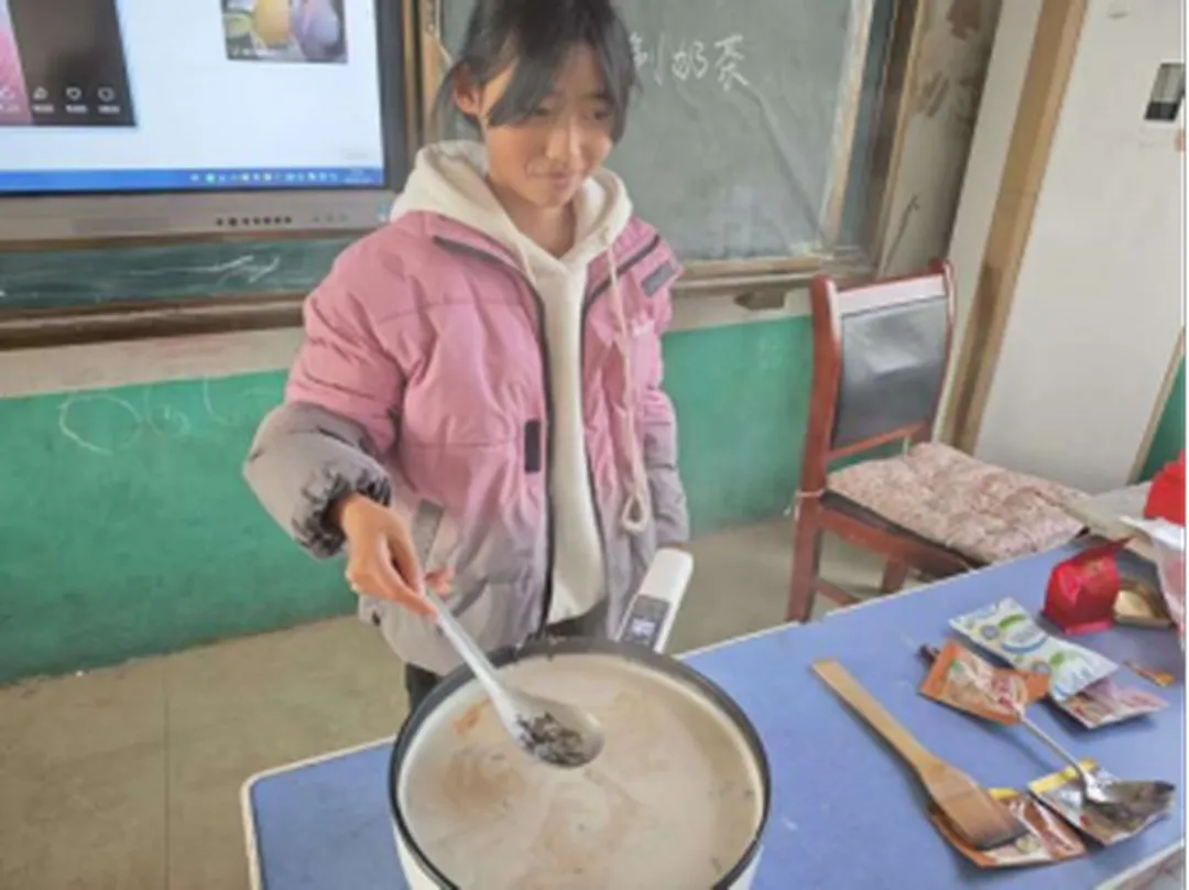 初冬的暖陽透過窗欞,在葉縣仙臺鎮布楊學校五年級的教室里灑下一地金黃。2025年12月9日下午,這個溫暖的教室變成一個充滿創意和溫情的“奶茶工坊”——老師與孩子們共同掌勺,在升騰的蒸汽中品嘗不同奶茶的獨特風味。空氣里彌漫著的不僅有奶茶的醇香,還有孩子們清脆的笑聲和對美味的期待。