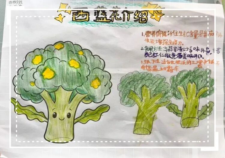 這是什么呢?哦!是西藍(lán)花。西藍(lán)花富含蘿卜硫素、維生素C及膳食纖維,具有增強(qiáng)免疫力、潤(rùn)腸通便和抗氧化抗衰老等功效,適量食用有益健康。小朋友要多吃些西藍(lán)花喲!