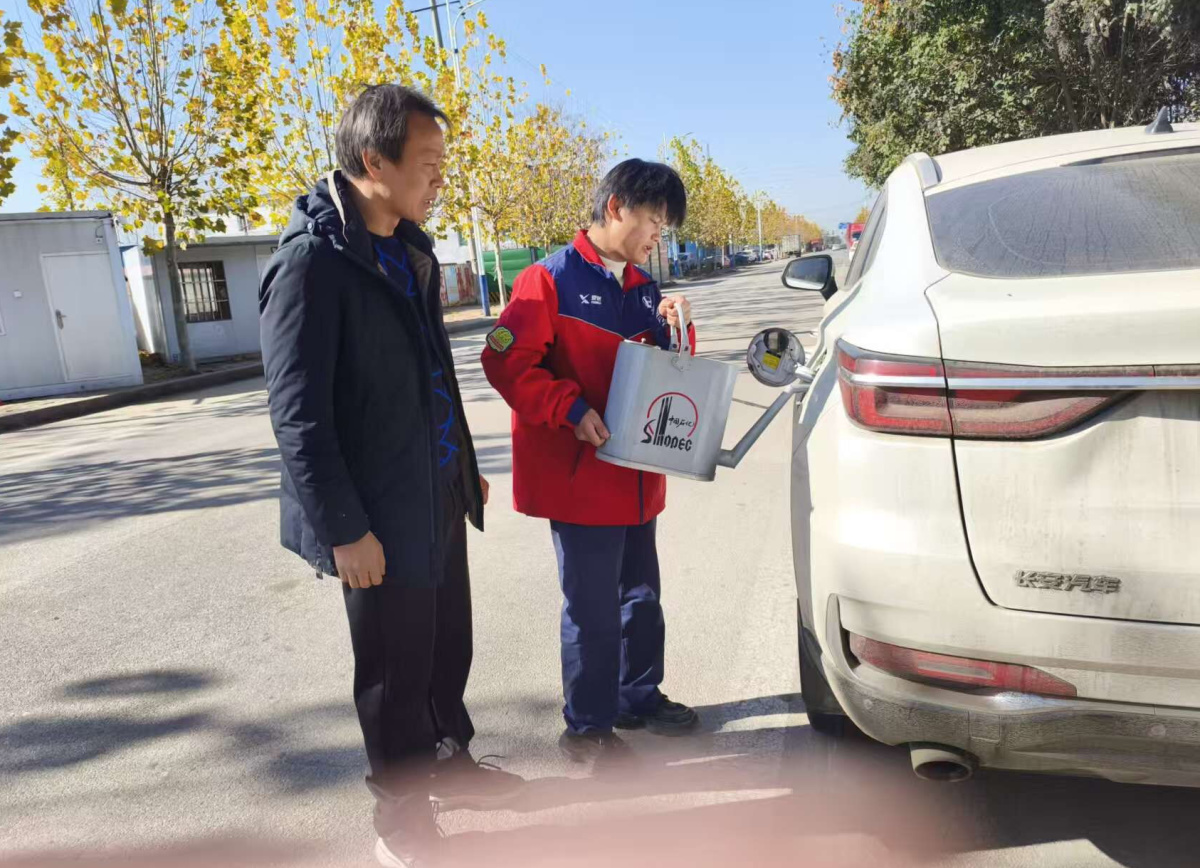 12月11日上午,中石化南陽社旗分公司新興隆站站經(jīng)理任書幸接到一通緊急求助電話:客戶趙先生駕駛的車輛在距離油站約一公里處燃油耗盡,無法繼續(xù)行駛。了解情況后,任書幸立即通過微信與趙先生保持實(shí)時聯(lián)系,并迅速帶領(lǐng)員工,攜帶應(yīng)急油桶趕往現(xiàn)場。到達(dá)后,工作人員確認(rèn)車輛信息,熟練地為車輛加注了燃油。整個過程高效有序,趙先生原本焦慮的心情也隨之平復(fù),連連稱贊員工表示感謝。隨后,他將車開至新興隆站,加滿了油箱。