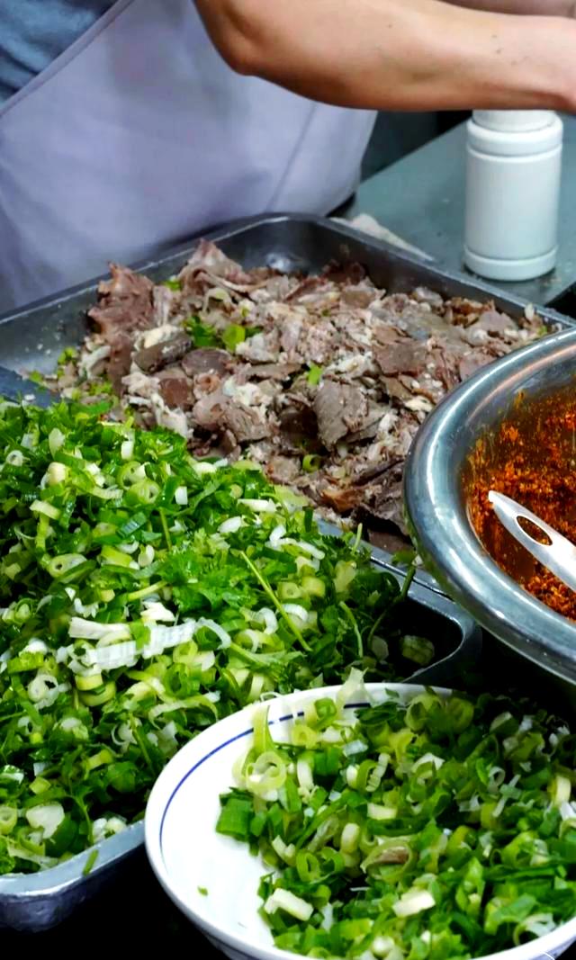 如果說面條是饸饹面的骨架,那么高湯便是它的靈魂。正宗的郟縣饸饹面高湯,必須選用新鮮的羊肉、牛肉以及牛羊全骨,搭配羊尾油、羊卷油,經反復沖洗去除血沫雜質后,放入大鍋中加足符合GB 5749標準的飲用水。熬湯時,需加入花椒、八角、草果、桂皮等大料,更有黨參、首烏、當歸、枸杞等16種中草藥,這些藥材不僅去除了肉類的膻味,更讓湯汁兼具了滋補功效。先用大火煮沸撇去浮沫,再轉文火慢燉2小時以上,期間不添加任何香精色素,全靠食材本身的營養與鮮味自然融合。熬好的高湯濃白如乳,香氣醇厚,舀一勺品嘗,鮮而不膩、溫潤綿長,喝下去從嘴巴到肚子里都透著舒坦,這便是千年傳承的“養生之味”。