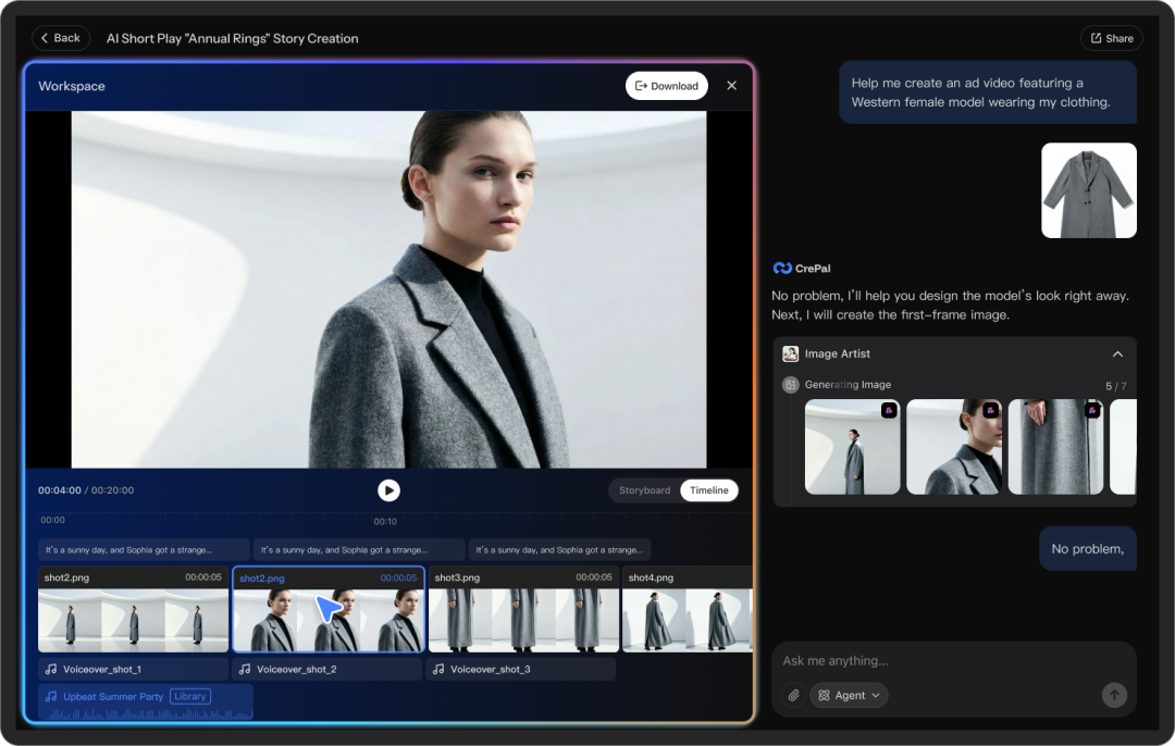 讓創作回歸創意本身在AI技術飛速發展的今天,CrePal的故事告訴我們:AI不是創作的替代者,而是創作的賦能者。通過將AIAgent的技術能力與專業導演的創作經驗相結合,CrePal正在打破“專業創作”與“高效產出”之間的矛盾,讓更多人能夠參與到視頻創作中來。