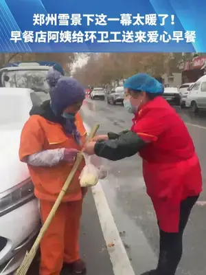 鄭州雪景下這一幕太暖了!早餐店阿姨給環衛工送來愛心早餐!#河南 #鄭州下雪 #暖心