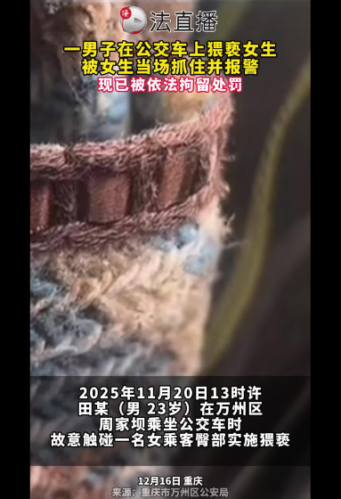 重慶一男子坐公交車猥褻女生被拘留
