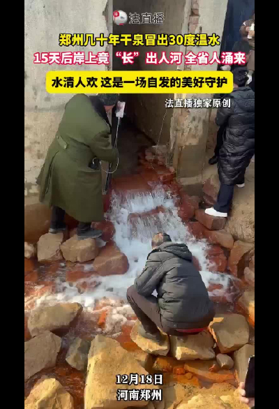 鄭州幾十年干泉冒出30度溫水 15天后岸上竟“長”出人河