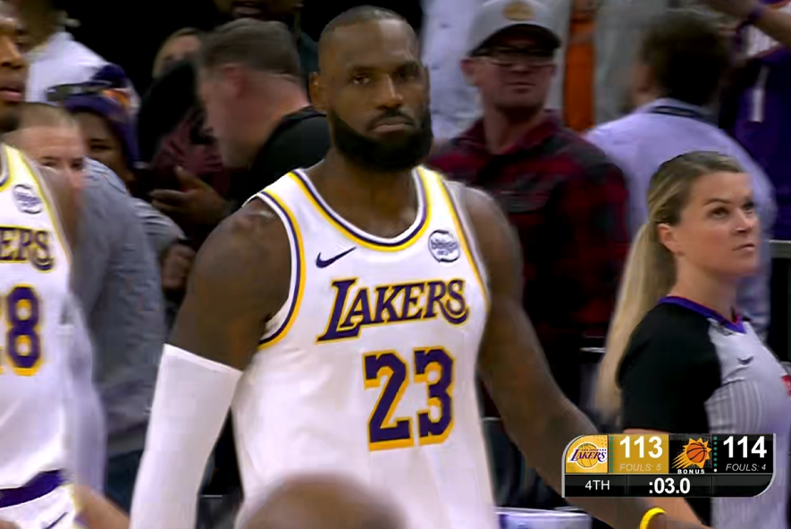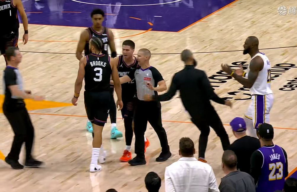 本來太陽隊已經完成逆轉,落后20分反超湖人了,但是硬生生被裁判吹死了,真的是見都沒見過,甚至這還是他們的主場。最后時刻,太陽隊由狄龍布魯克斯投中三分,而且被詹姆斯撞倒在地,這應該是個3+1。