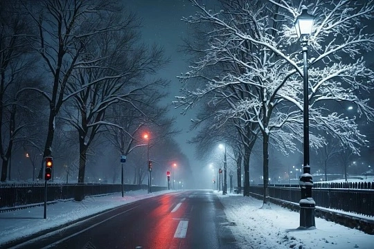 他走到陽臺,推開窗,冷空氣一股腦兒涌進來,帶著雪的清冽。窗外的雪漸漸密了,風卷著雪花在路燈的光暈里旋轉,像一群迷失方向的白蝶。雪花斜斜地飄進來,落在他的手背上,瞬間融化成細小的水珠。街對面的樓房燈火通明,卻靜悄悄的,偶有車輛碾過積雪的街道,發出沉悶的聲響。