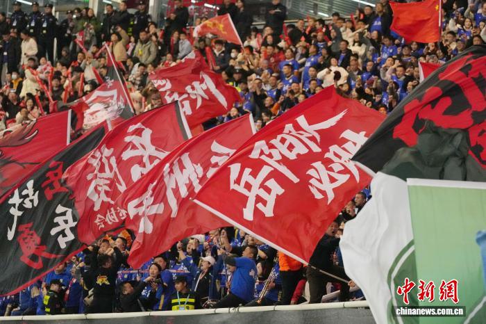 12月14日晚,2025湖南省足球聯(lián)賽淘汰賽四分之一決賽在長(zhǎng)沙進(jìn)行,長(zhǎng)沙隊(duì)主場(chǎng)2:0擊敗岳陽(yáng)隊(duì),成功晉級(jí)四強(qiáng)。圖為岳陽(yáng)隊(duì)球迷搖旗助威。中新社記者 楊華峰 攝