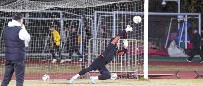 12月14日晚,2025湖南省足球聯(lián)賽淘汰賽四分之一決賽在長(zhǎng)沙進(jìn)行,長(zhǎng)沙隊(duì)主場(chǎng)2:0擊敗岳陽(yáng)隊(duì),成功晉級(jí)四強(qiáng)。圖為長(zhǎng)沙隊(duì)63號(hào)姜承坤點(diǎn)球破門。中新社記者 楊華峰 攝