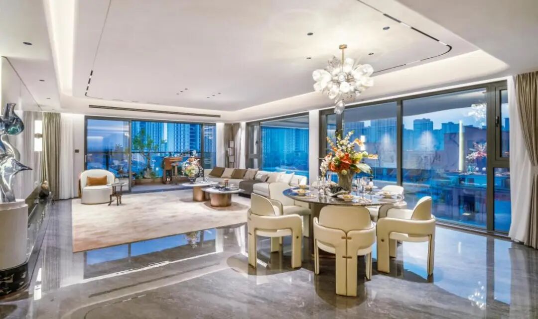 在戶型設計上,建中九樾云筑項目堅持以人為本,注重空間的高效與實用。通過創新結構與精細化設計,實現約110%—142%的高得房率。顯著提升住宅的空間使用效率和實際居住價值。產品建筑面積約137-256㎡全能戶型,采用一體化闊廳設計,約3.15米的奢適層高,搭配270°環幕視野,延伸了景觀視野與活動空間,滿足不同家庭結構對美好居住生活的具體需求。