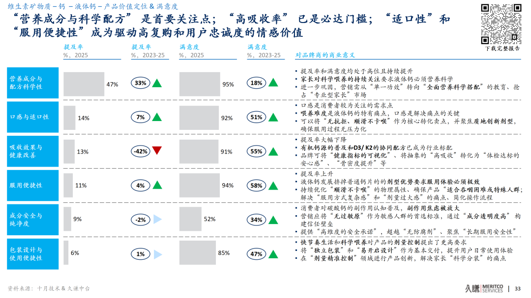 為什么液體鈣的“配方科學性”提及率會暴漲33%,而大盤的“技術含量”滿意度高達95%?