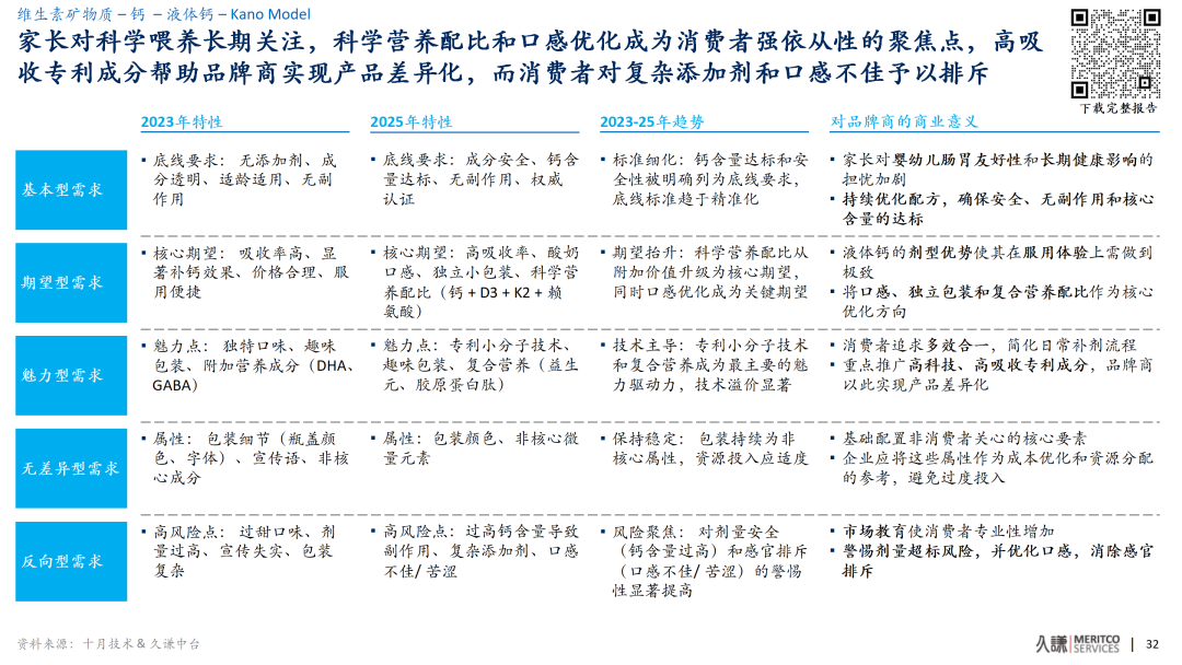 液體鈣的數據證明,單一成分(55%→13%)的關注度已死,科學復配(14%→47%)才是王道。選品應側重那些能夠講清楚協同作用的復合型產品(如:腦力金三角、骨骼五維營養)。