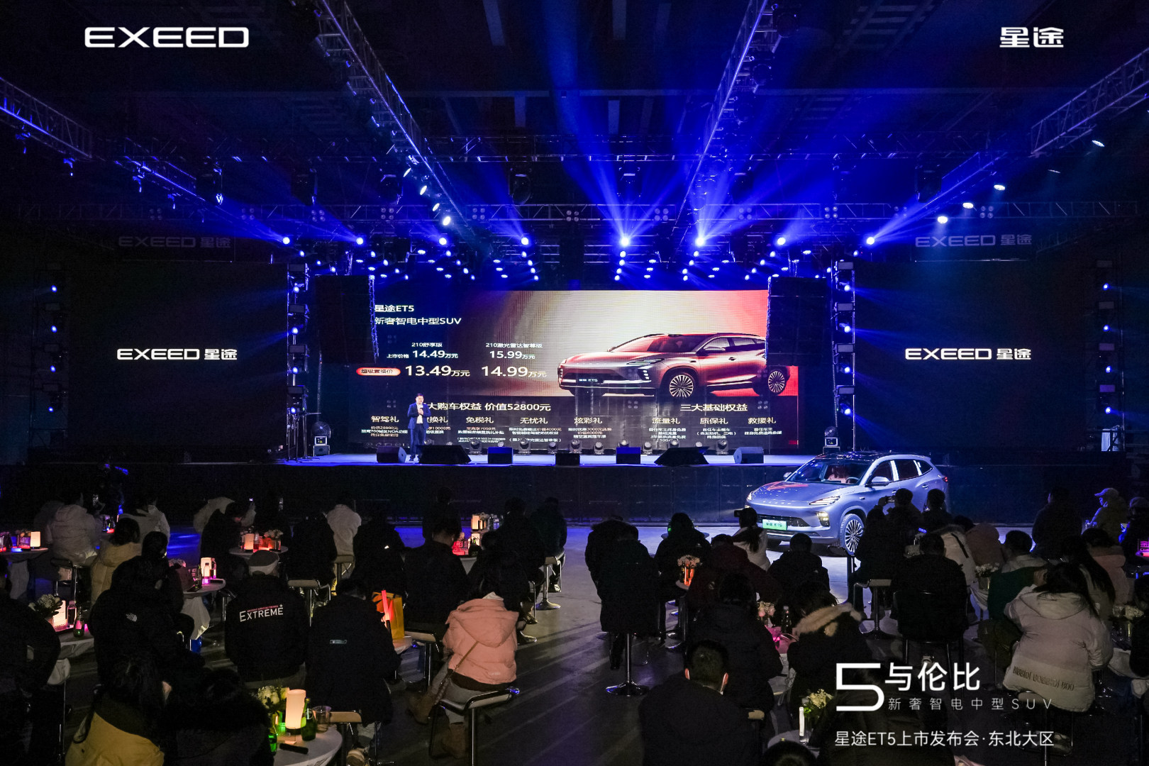 12月14日,遼寧沈陽紅梅文創園-原料庫LIVE HOUSE內星光熠熠,備受期待的新奢智電中型SUV——星途ET5東北大區上市發布會在此隆重舉行?;顒蝇F場匯聚眾多媒體及客戶,共同見證了這一“5與倫比”的劃時代車型華麗亮相。
