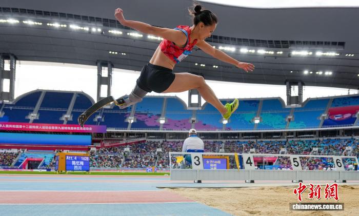在女子跳遠T63級決賽中,四川隊選手陳憶梅以3米88的成績獲得金牌,并創造了新的全國紀錄。