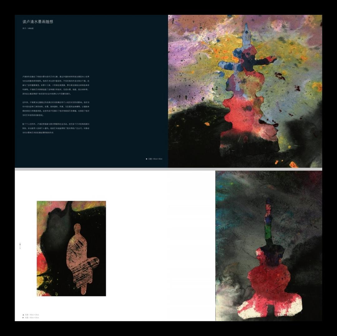 近日,盧清兄發來成組的作品圖片和資料,說他正在編一套自己的藝術叢書(共六卷)《意象》《墨象》《線象》《心象》《漆象》《眾象》,囑我為《心象》作序。