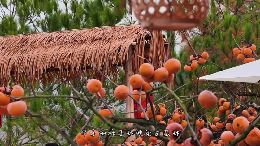 圖為民眾在柿子園里體驗采摘樂趣。(無人機照片)楊宗盛 攝