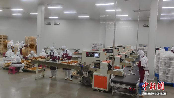 圖為平樂縣橋亭鄉(xiāng)柿子加工企業(yè)工人正在生產(chǎn)包裝柿餅。楊宗盛 攝