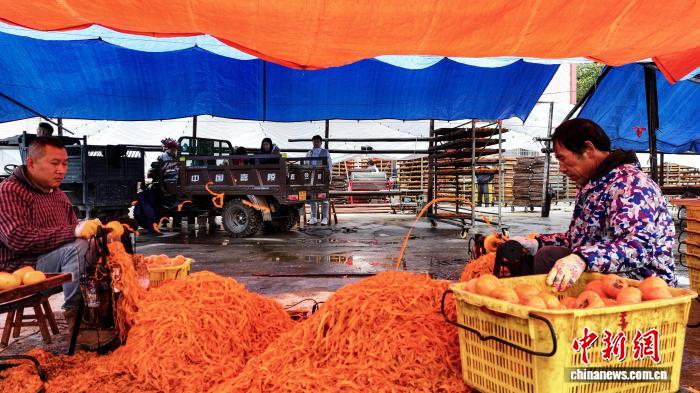 圖為果農(nóng)在用機械削柿子皮。楊宗盛 攝