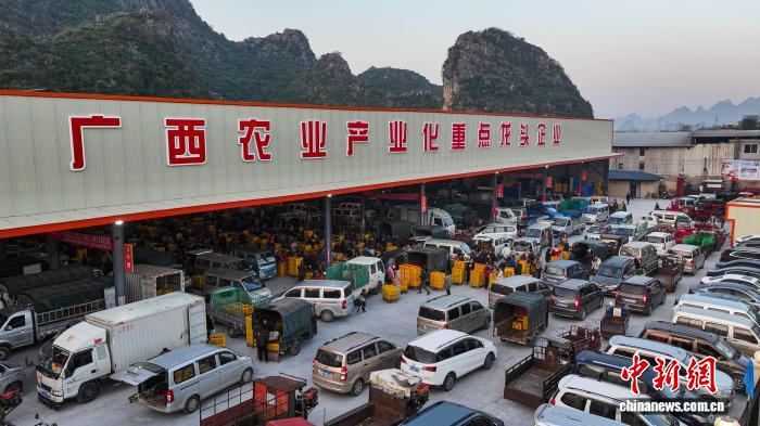 圖為平樂縣沙子鎮(zhèn)柿餅交易集市現(xiàn)場。(無人機照片)楊宗盛 攝