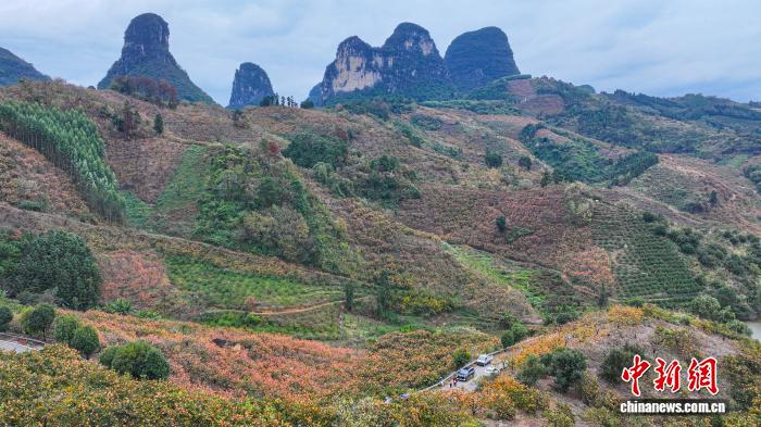 圖為平樂縣橋亭鄉(xiāng)柿子產(chǎn)業(yè)種植基地。(無人機照片)楊宗盛 攝