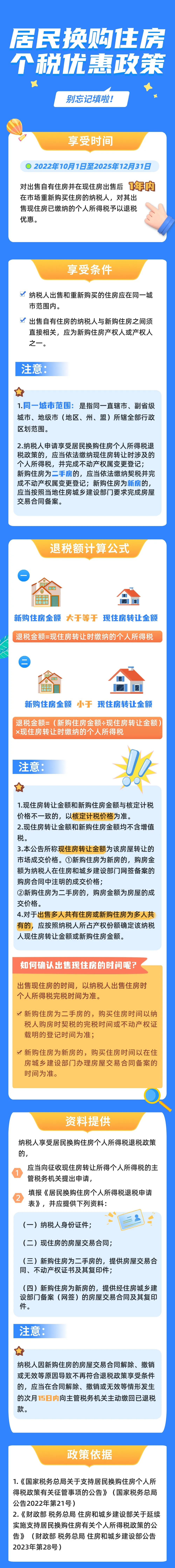 根據相關公告,對出售自有住房并在現住房出售后1年內在市場重新購買住房的納稅人,對其出售現住房已繳納的個人所得稅予以退稅優惠,公告執行至2025年底。
