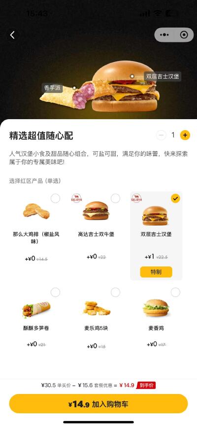 據紅星新聞,12月15日早間,有網友發現麥當勞餐品的價格均有所上調,漲幅在0.5-1元,包括多款漢堡、小食及套餐。 值得注意的是,被網友調侃為“窮鬼套餐”的“1+1隨心配”套餐價格并未調整,仍為13.9元起,但其中搭配不同的單品,出現了1元漲幅的組合方式。