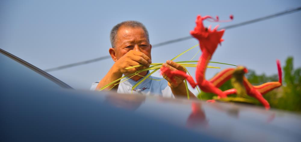 這街角的偶遇,不由地讓我想起了今年端午節時,應邀參加“‘粽香傳情?非遺共賞’——‘我們的節日?端午’文明實踐活動”時邂逅的一項市級非遺草編。彼時在活動的草編區域,一堆看似普通的草葉在非遺傳承藝人的手中仿佛被注入了生命。藝人手指靈動翻飛,不過片刻,一只栩栩如生的草編螞蚱便躍然眼前:觸須細長而靈動,仿佛正隨微風輕擺;翅膀紋理清晰分明,似乎下一秒就要振翅飛翔。旁邊陳列的草編小兔子更是憨態可掬,點染的紅眼睛鮮活靈動,蓬松的草編身體透著自然的質感,讓人忍不住想要伸手觸摸那份質樸的溫度。