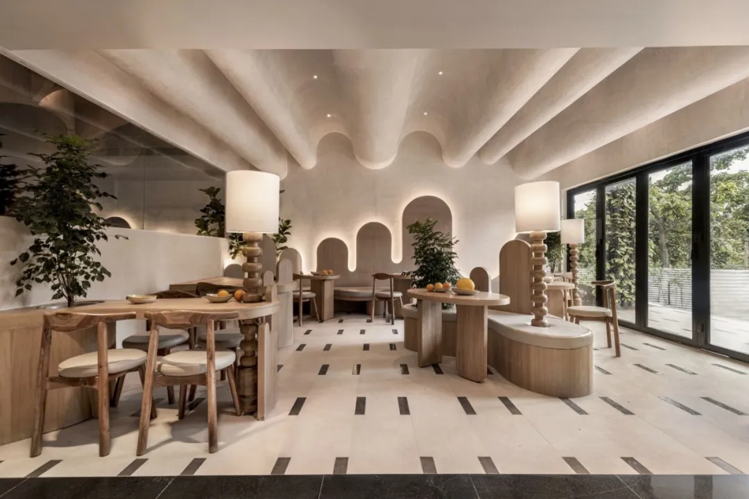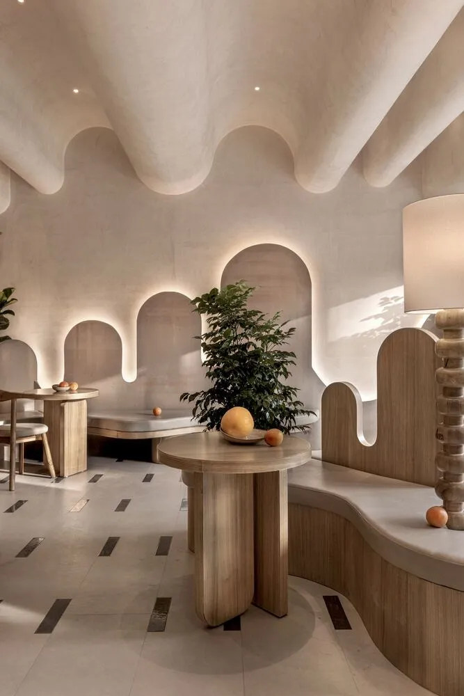 “曲線是神的語言。”Myfresh Café 旨在打造一個大膽而流動的空間,坦然摹擬自然形態,也是一次對無縫曲線與極簡之美的探索。