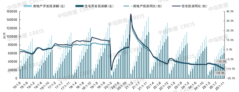 供應:1-11月房地產開發投資額同比下降15.9%