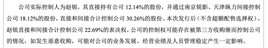 據招股書,原力數字的實際控制人為趙銳,其直接持有公司12.14%的股份,并通過南京銳影、天津縱力間接控制公司18.12%的股份,直接和間接合計控制公司30.26%的股份。