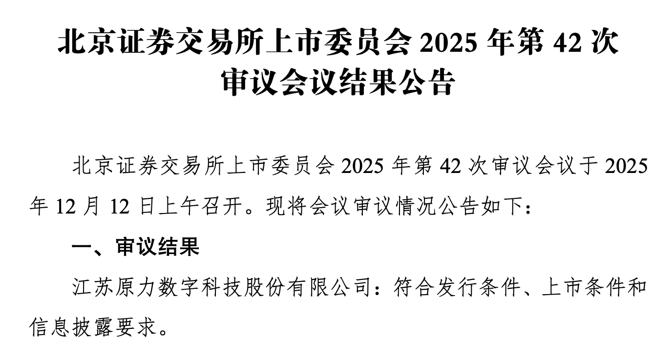 瑞財經 吳文婷 12月12日,江蘇原力數字科技股份有限公司(以下簡稱“原力數字”)北交所IPO過會,保薦機構為中泰證券股份有限公司。