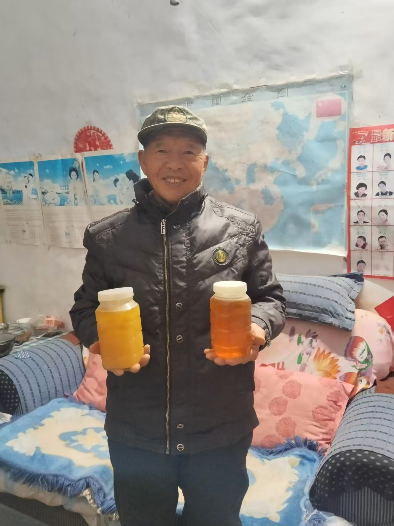 20世紀(jì)70年代末,初中剛畢業(yè)的楊國升便跟著村里老蜂農(nóng)學(xué)習(xí)養(yǎng)蜂。“17歲的娃,啥也不懂,就覺得蜜蜂嗡嗡采蜜的樣子稀奇。”回憶入行時的場景,老人黝黑的臉上泛起笑意。賈莊村氣候適宜,四季分明,光照充足,溝谷間隨處可見連片的槐樹和野棗樹。得天獨厚的自然條件,讓這里成為養(yǎng)蜂的天然福地。最初學(xué)挑蜂箱、辨蜂王、查巢脾,他的手被蜜蜂蜇得紅腫發(fā)亮。“疼得鉆心,但看著蜂蜜從巢脾里淌出來,就啥都忘了。”楊國升說。