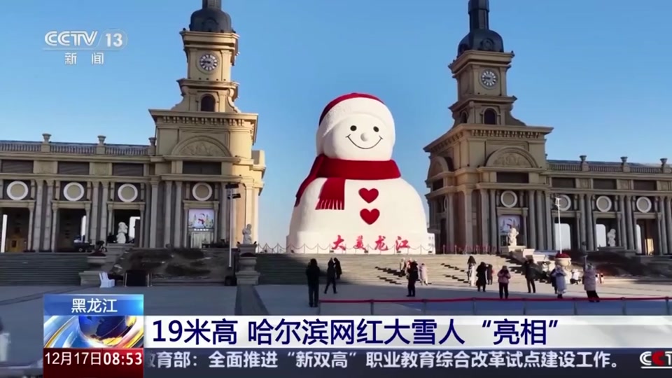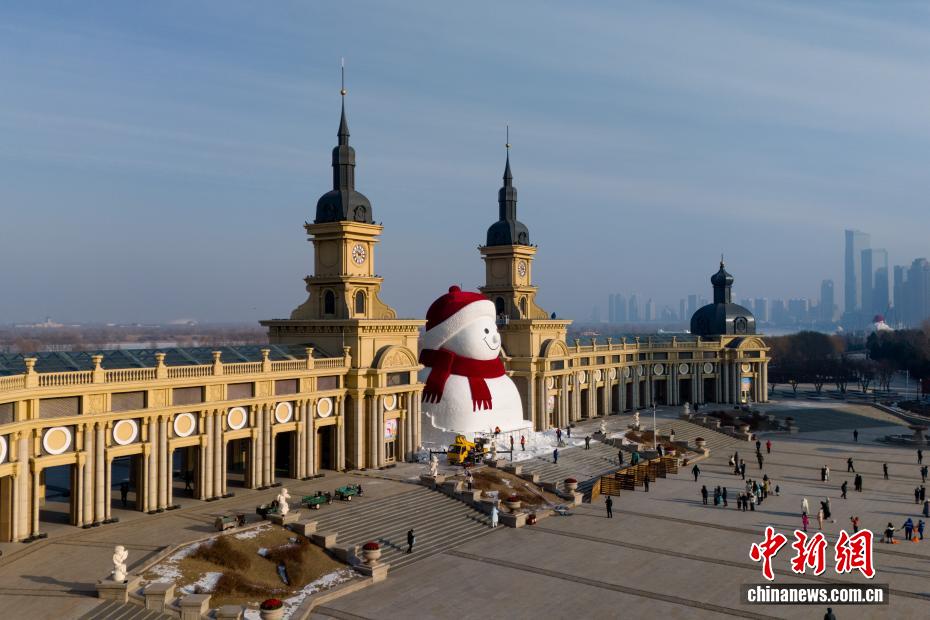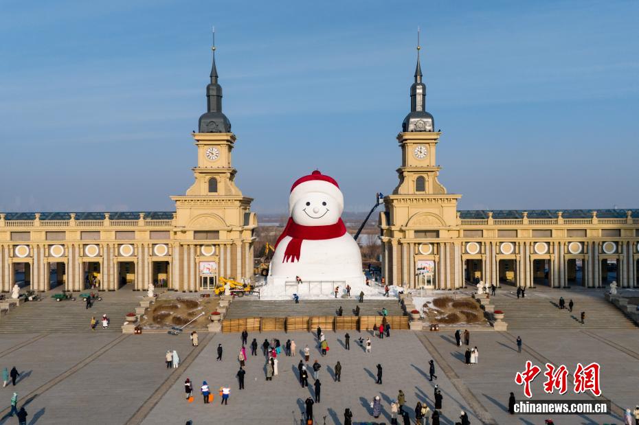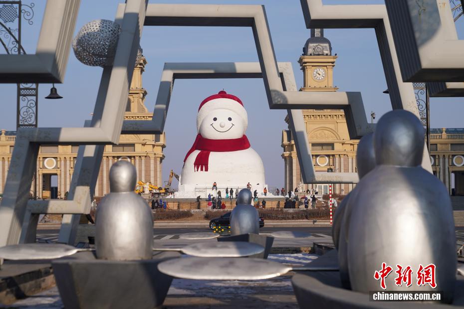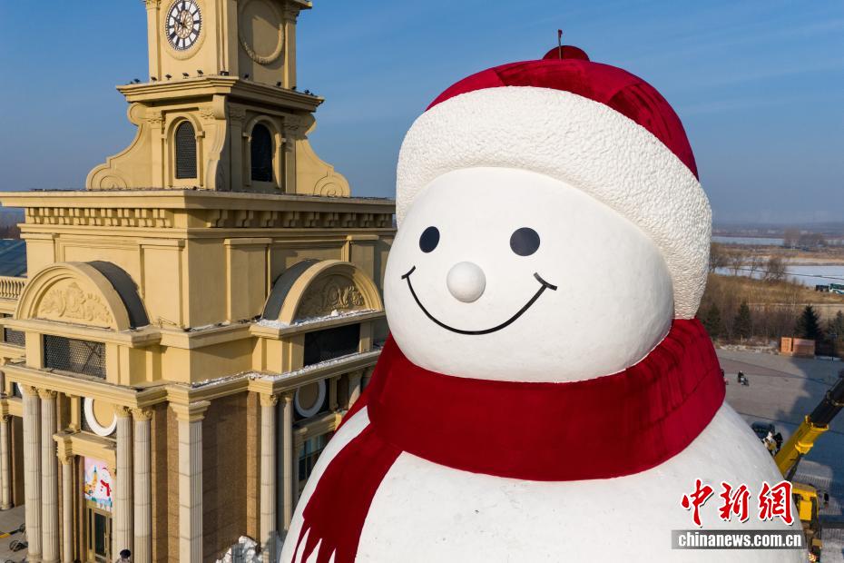 12月15日,在黑龍江省哈爾濱市道里區群力音樂公園,“網紅大雪人”主體完工,驚艷亮相。頂流大雪人戴著紅帽子、系著紅圍脖,用憨態可掬的微笑迎接八方來客。今年回歸的大雪人再次升級,身高達19米,總用雪量超過3000立方米,達到歷年之最。作為松花江畔的冬季標志性景觀,大雪人的回歸為哈爾濱增添了更多童話色彩,吸引眾多市民游客前來打卡留念。圖為大雪人亮相。