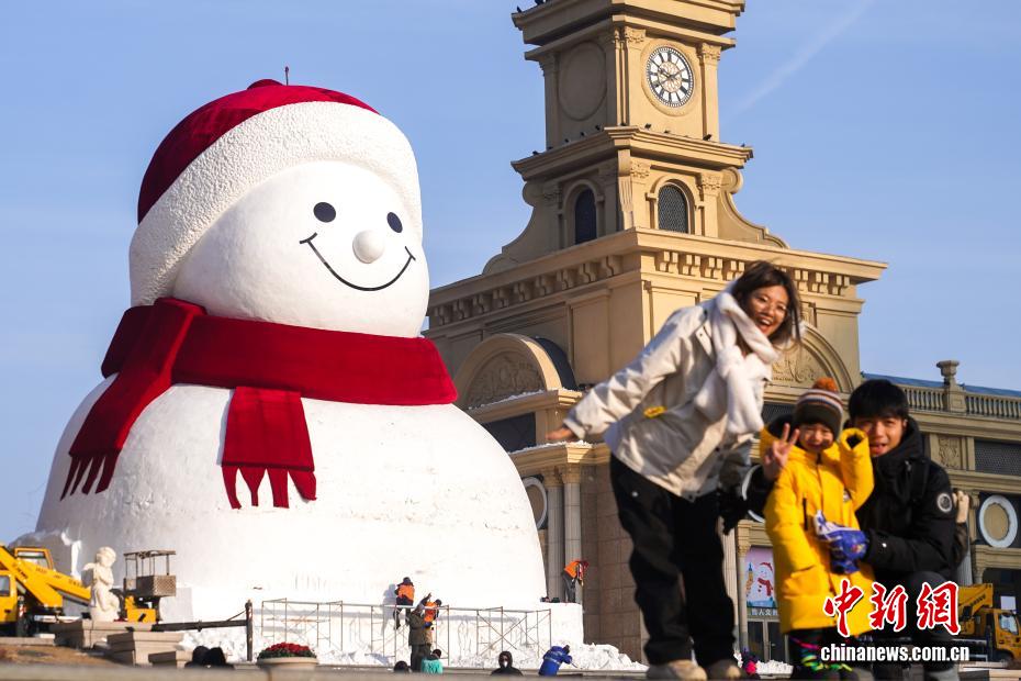 12月15日,在黑龍江省哈爾濱市道里區群力音樂公園,“網紅大雪人”主體完工,驚艷亮相。頂流大雪人戴著紅帽子、系著紅圍脖,用憨態可掬的微笑迎接八方來客。今年回歸的大雪人再次升級,身高達19米,總用雪量超過3000立方米,達到歷年之最。作為松花江畔的冬季標志性景觀,大雪人的回歸為哈爾濱增添了更多童話色彩,吸引眾多市民游客前來打卡留念。圖為大雪人吸引游客打卡。