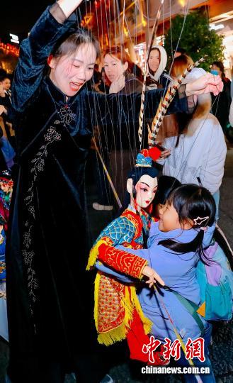 圖為木偶巡游吸引大批民眾參與互動。中新社記者 王東明 攝