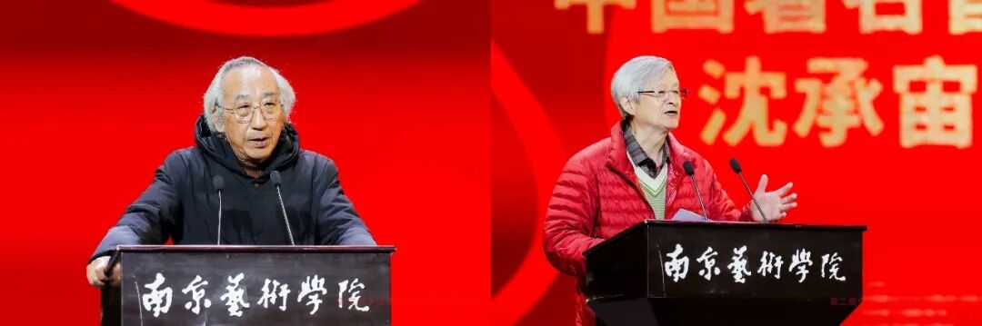 ▲中國戲劇文學學會音樂劇藝術(shù)專業(yè)委員會總顧問、南京藝術(shù)學院居其宏(左)中國戲劇文學學會音樂劇藝術(shù)專業(yè)委員會總顧問、著名音樂劇教育家沈承宙(右)發(fā)言